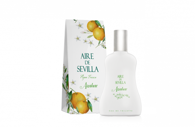Aire de Sevilla Agua Fresca de Azahar, es un puro destello de clementina, mandarina y bergamota dan rienda suelta a un torrente mediterráneo impregnado de azahar, deliciosamente acompañado de muget y jazmín para descansar sobre doradas dunas de ámbar y musk.