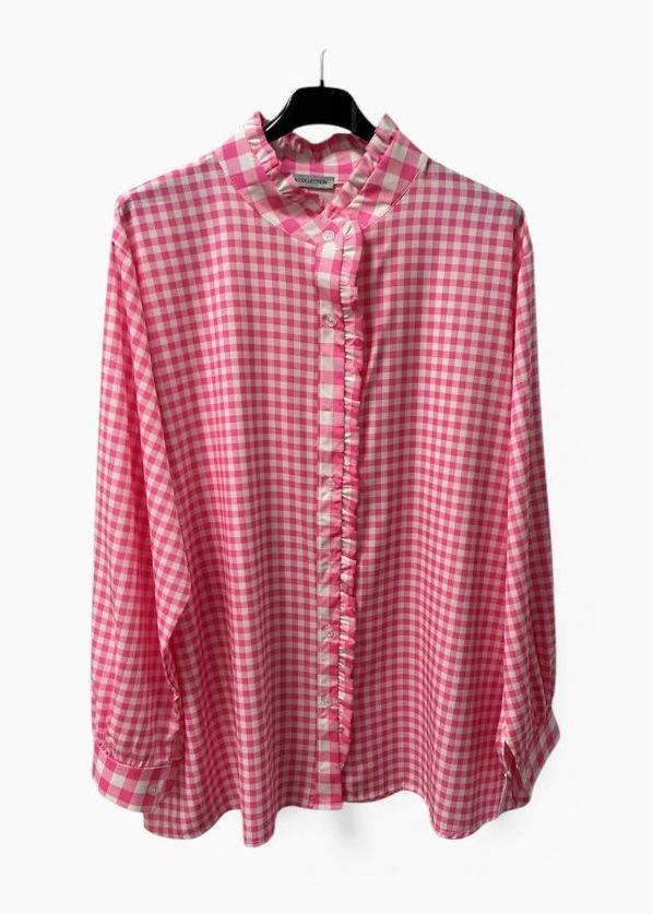 Añade un toque de frescura y tendencia a tu armario con nuestra blusa de cuadros gingham en color rosa vibrante. Esta prenda combina el encanto del estilo clásico country-chic con detalles modernos, convirtiéndola en el básico ideal para elevar tus looks de diario.