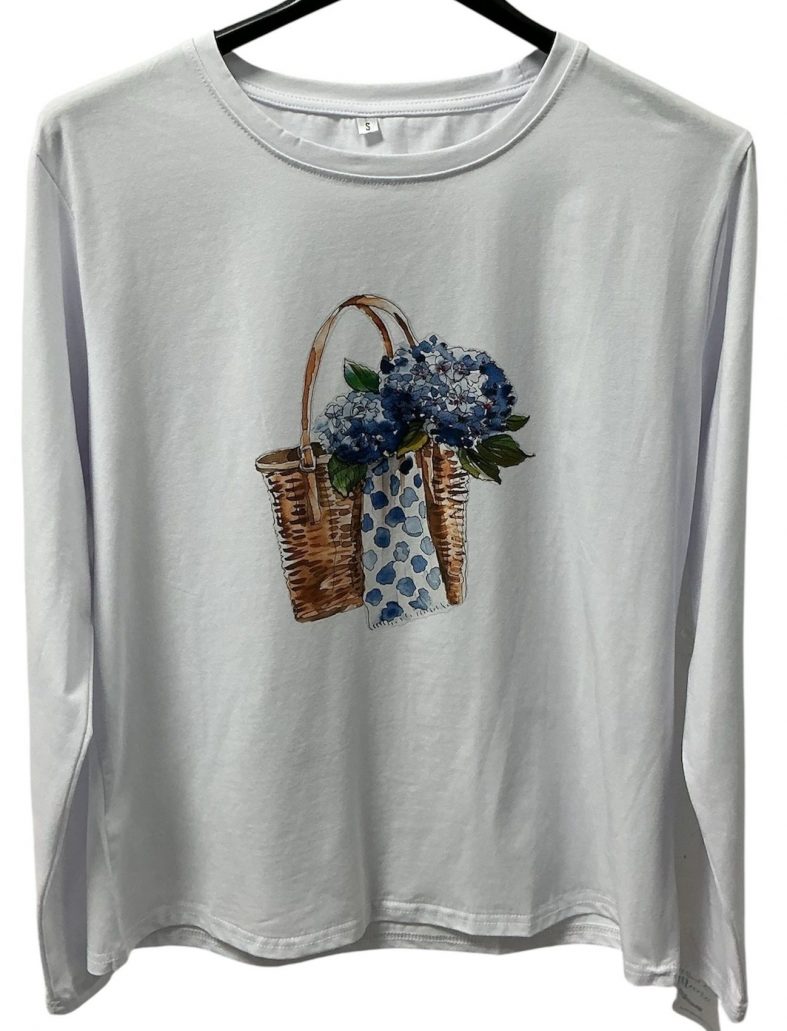 Camiseta Manga Larga «Cesta de Hortensias» – Estilo Floral y Delicado