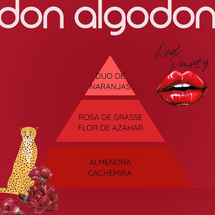 DON ALGODÓN Red Party Eau de Toilette es una fragancia que combina la frescura y calidez en un aroma diseñado para mujeres que buscan un toque único y seductor.